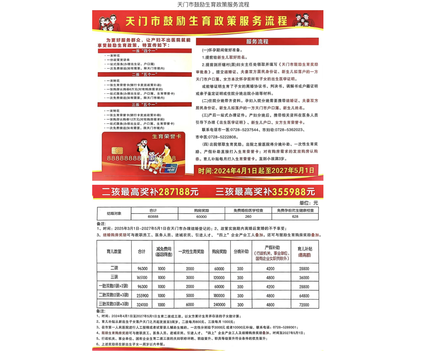从全国范围内看,在20多个已出补贴政策的省市中,天门的生育支持力度堪称“天花板”。