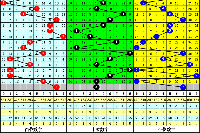 个位:上期奖号0为:小 号偶数,在连续7期开奖中,该位分别开出:0:小 号偶数、7:大号奇数、4:小 号偶数、8:大号偶数、0:小 号偶数、9:大号奇数、0:小 号偶数,其中大号出现较少,奇数相走势相对较冷,本期个位看好开出大号奇数出现。