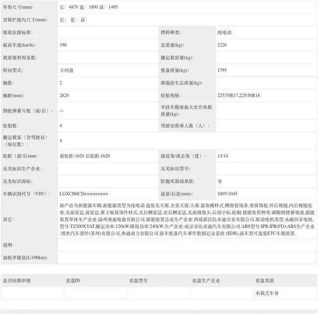尺寸参数:4870/1890/1495mm/2820mm