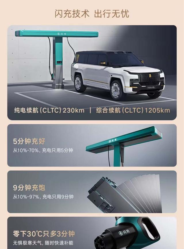 在作为一台增程式全尺寸SUV,它“不过”180km的CLTC纯电续航被认为是过去的一个短板,尽管放在全尺寸市场,这一数据是完全可接受的,可毕竟是百万级产品,市场对它的期待可不止这么多。而此次焕新,通过更换上全新电池组,车辆不仅把纯电续航拉升到230km,更落地了闪充技术,10-70%仅需5分钟、10-97%仅需9分钟,即便是零下30°C补能也就多了3分钟,这表现足以让用户告别所谓的里程焦虑。